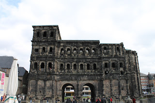 It is not a long ride to Trier, so we got a good start. We parked by the Porta Nigra (Black Gate) and started our stroll...which included going up into the gate (well worth the 3 euro). Porta Nigra was built in Trier , Germany and was used as a church during the middle ages. Porta Nigra also called Black Gate because of the layer of black soot on the sandstone. The Gate dates to the time of 180 AD